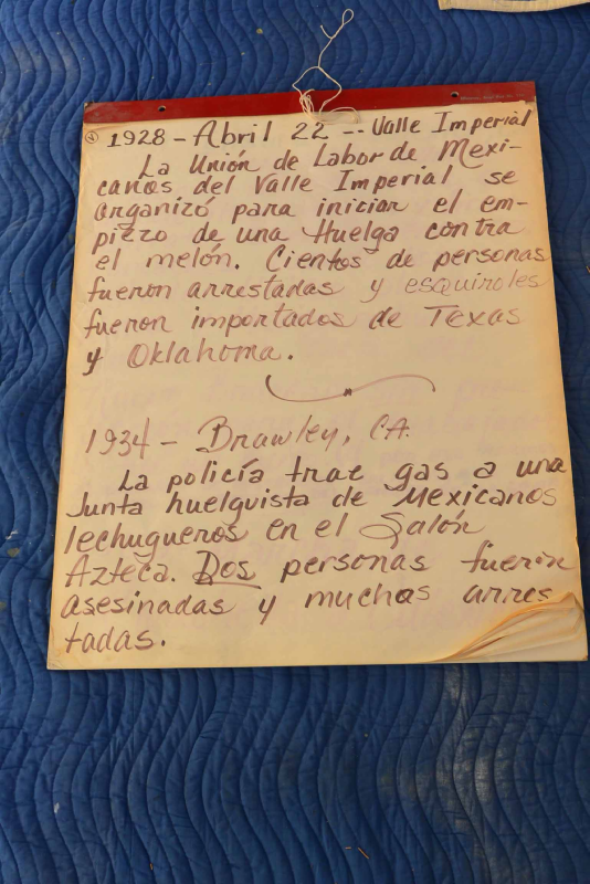PDF of photos of an easel pad with the timeline of farmworkers strikes.