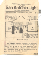 “Frank Talk Around the Plaza” Newspaper Article |
