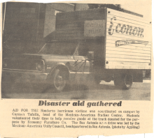 Carmen Tafolla and the rest of the Mexican American studies center was featured in the newspaper for gathering aid for Honduras hurricane victims |