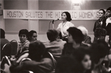 Photograph shows Martha Cotera at the 1977 International Women's Year National Women's Conference in Houston, Texas. |