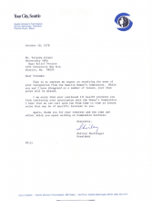 A letter from Shirley Skellenger, then president of the Seattle Women's commission expressing regret on receiving news of Yolanda's resignation due to ill health |