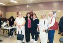 A photo of five women, whose names, left to right, are Cecilia, Rita, Leota and Cecilia. They may be relatives. Photo taken at the San Bernadino Library. |