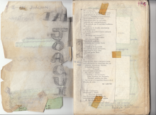 A copy of I Am Joaquin taped on the first page of a booklet. |