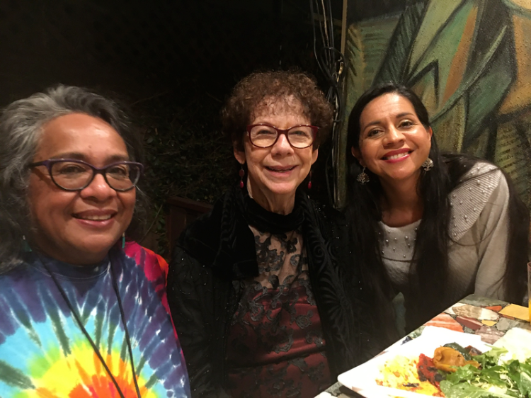 Osa Hidalgo de la Riva (left) with Marsha Kinder (center) and Maria Elena Chavez (right). Marsha Kinder was Osa's dissertation chair person at USC. Marsha was a founder of the Claremont Colleges film school, and was the first at Sundance Film to make a digital media presentation called the Runaways Project--which included part of Osa's Olmeca Rap. Though other people have mentioned, she had a strong professional persona and was extremely patient and supportive of Osa and her work. She painstakin